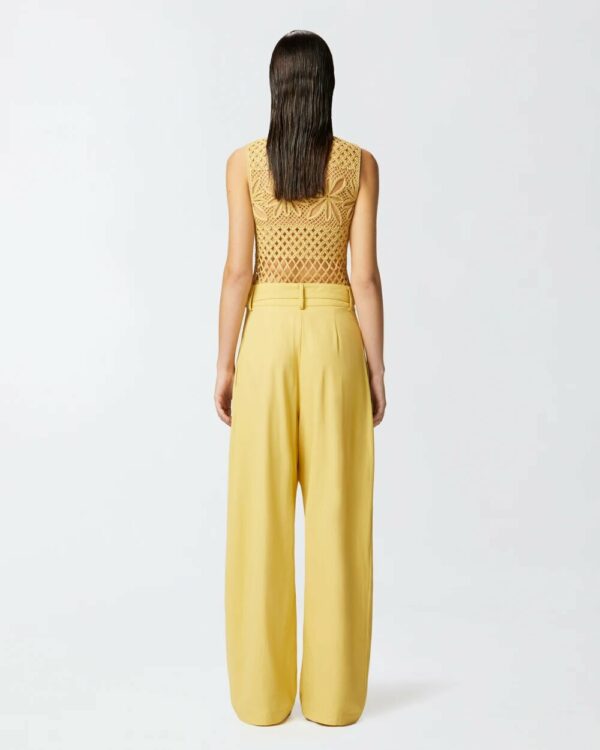 Pantaloni lunghi a gamba larga in tessuto fluido di cotone caratterizzati da vita alta con cinturini e da un design particolare che riproduce l'effetto di pannelli incrociati sulla gamba. La vita alta di questi pantaloni palazzo è completata da cavallo rilassato che accentua il volume ampio e morbido del capo, perfetto sia in ufficio che per le occasioni speciali giocando con gli abbinamenti e gli accessori. Tasche inserite sui fianchi e chiusura con zip.