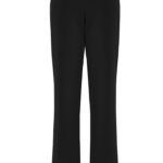 Pantaloni eleganti, in tessuto elasticizzato, a vita alta, impreziositi sui fianchi da una fila di bottoni con bordo dorato.
