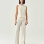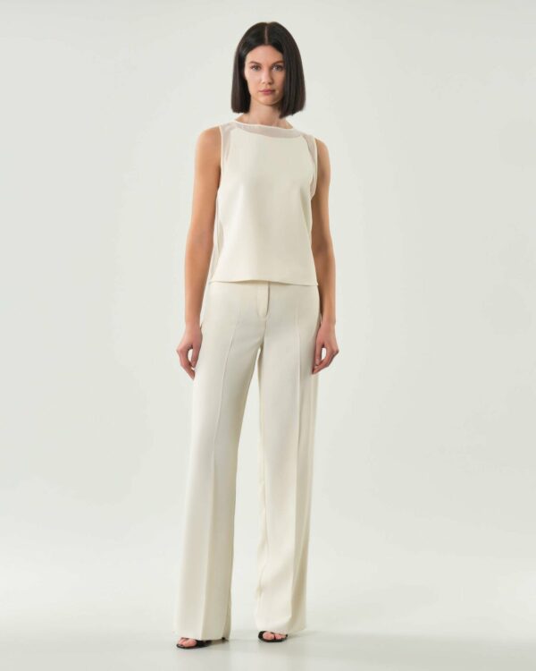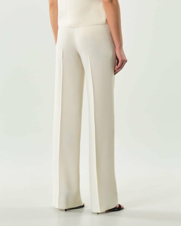 Pantalone elegante realizzato in envers satin, con costruzione ispirata alla sartoria maschile. Le nuance luminose introducono la nuova stagione, suggerendo abbinamenti versatili, dal bustier alla giacca doppiopetto.