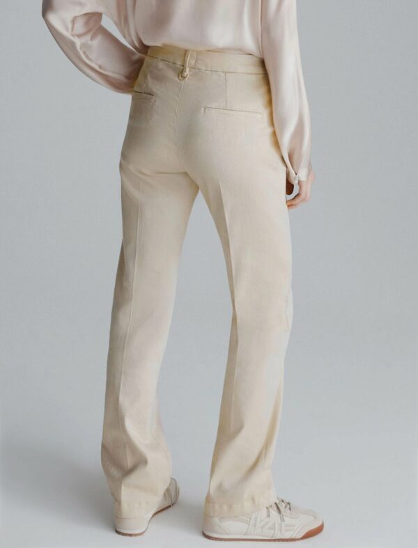 Gamba ampia e tessuto stretch definiscono questo nuovo pantalone con dettagli ispirati al tailoring maschile. Impeccabile con una blusa in raso, perfetto con blazer e slingback.