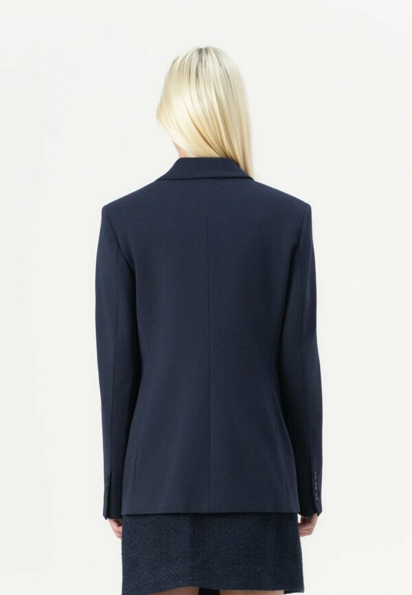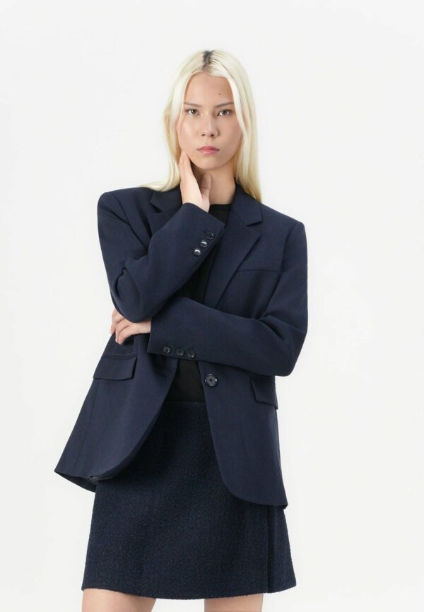 Giacca blazer monopetto realizzata in tessuto tecnico di viscosa stretch lavorata a punto stoffa. Linea leggermente boxy con collo a rever, maniche lunghe con spalle costruite, taschino a filetto e tasche con patta applicata sui fianchi. La giacca è foderata in tessuto e la chiusura monopetto è completata da doppio bottone in tono colore. Il tessuto principale è realizzato con il 67% di viscosa da foreste gestite responsabilmente.