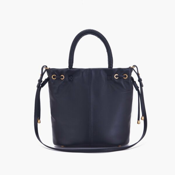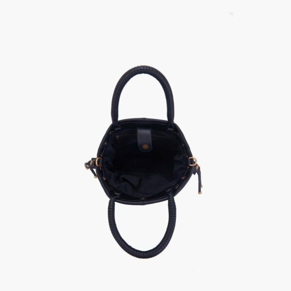 SECCHIELLO IN PELLE CON SPEZZATURE E MANICI E TRACOLLA IN PELLE.