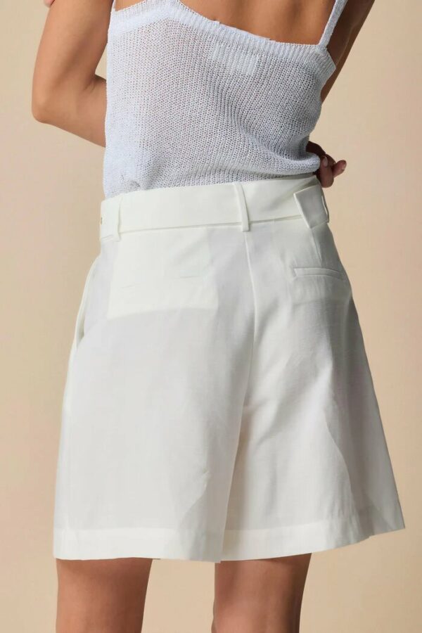 Short della capsule Pure Verve con gamba ampia, pinces in vita, cintura con fibbia dorata, tasca a filetto sul retro.