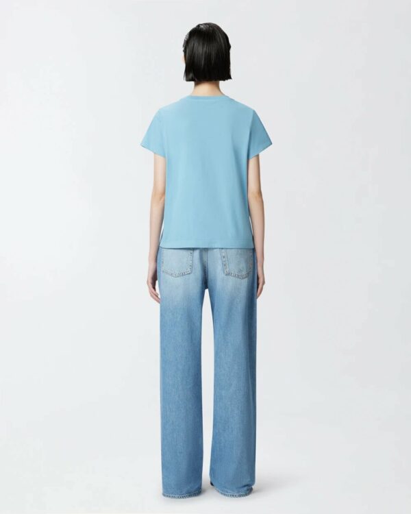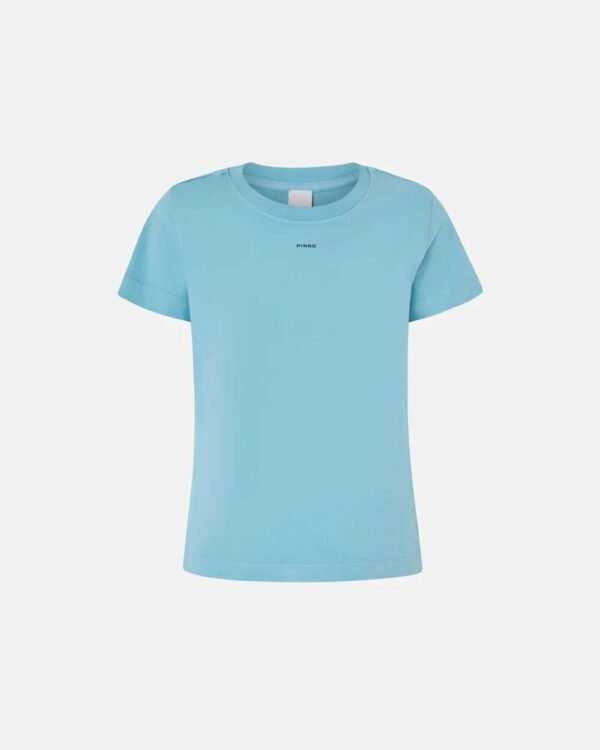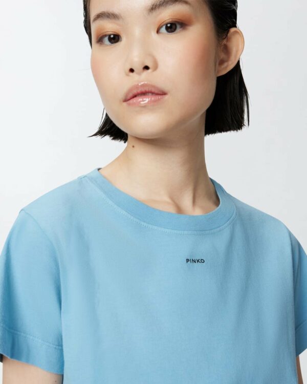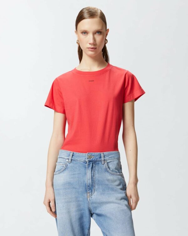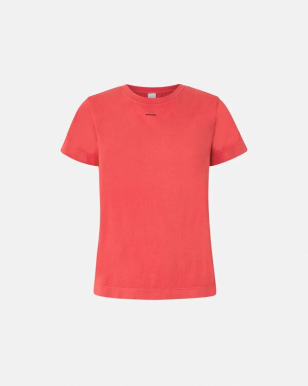 T-shirt a maniche corte in jersey di cotone trattamento old wash personalizzata con stampa mini logo PINKO centrale davanti.