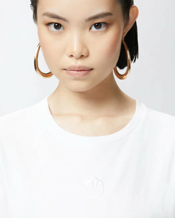 T-shirt da donna a maniche corte in jersey di cotone effetto old wash con logo Love Birds effetto ricamato davanti. Questa t-shirt rappresenta un vero e proprio passepartout in puro stile PINKO: perfetta da indossare in qualunque occasione, dalle più formali alle più sporty, aggiungendo un tocco femminile e iconico.