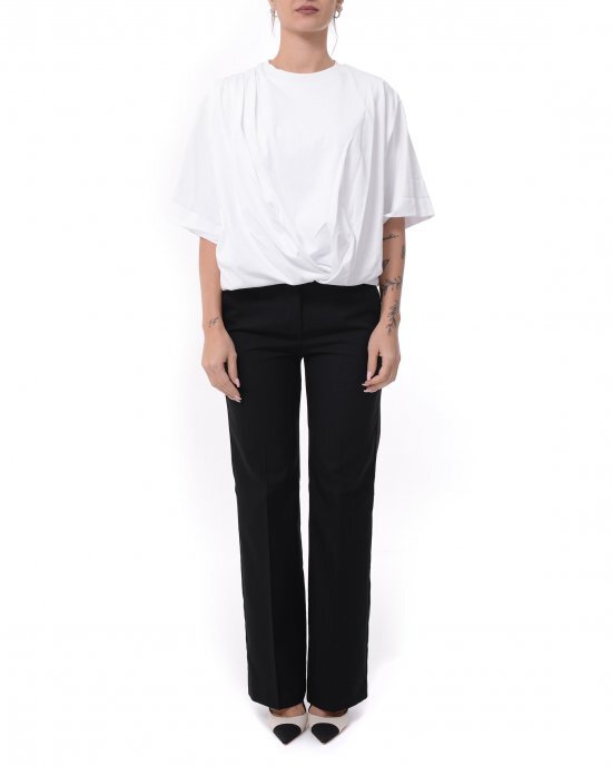 T-shirt Locomotiva 105003 donna PINKO, a maniche corte, in jersey di cotone, corta con arricciatura sul fondo. 100% Cotone