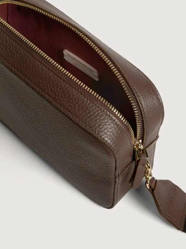 Realizzata in pelle con una palette di colori raffinati e dettagli di ispirazione rétro, la camera bag Tebe conferisce un gusto più casual al look di tutti i giorni, anche grazie alla comoda tracolla in tessuto. Questo modello è realizzato in pelle lavorata tramite specifici macchinari e poi bottalata al fine di mantenerne la morbidezza. È una pelle molto resistente che si presta a una facile pulizia, ideale per un uso quotidiano.