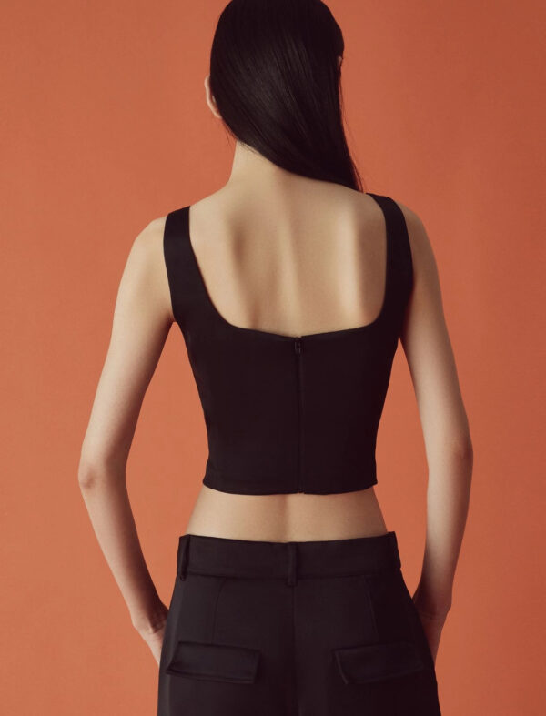 Top in satin recycled, linea semiaderente. Scollo rotondo davanti e dietro, senza maniche. Chiusura con zip sul retro. Il capo è parte della collezione Marella ART.365: la collezione seasonless di Marella, capi semplici da mixare che esaltano la femminilità. Scoprila nei suoi modelli iconici declinati nei due colori signature, il bianco e il nero, o nella versione stampata.