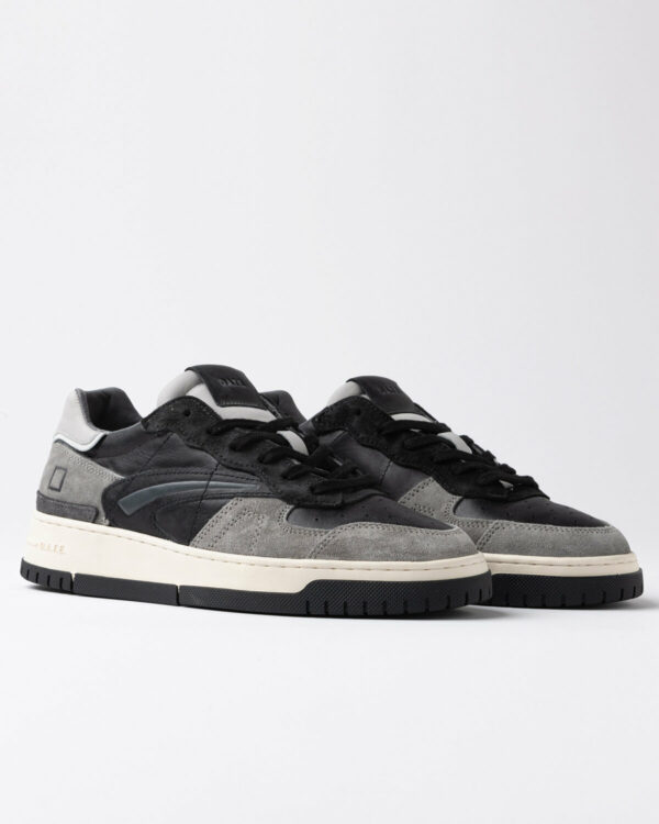 Sneakers bassa in pelle colore nero e suede grigio.