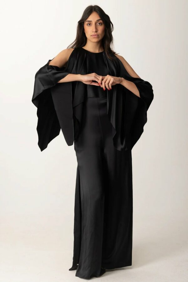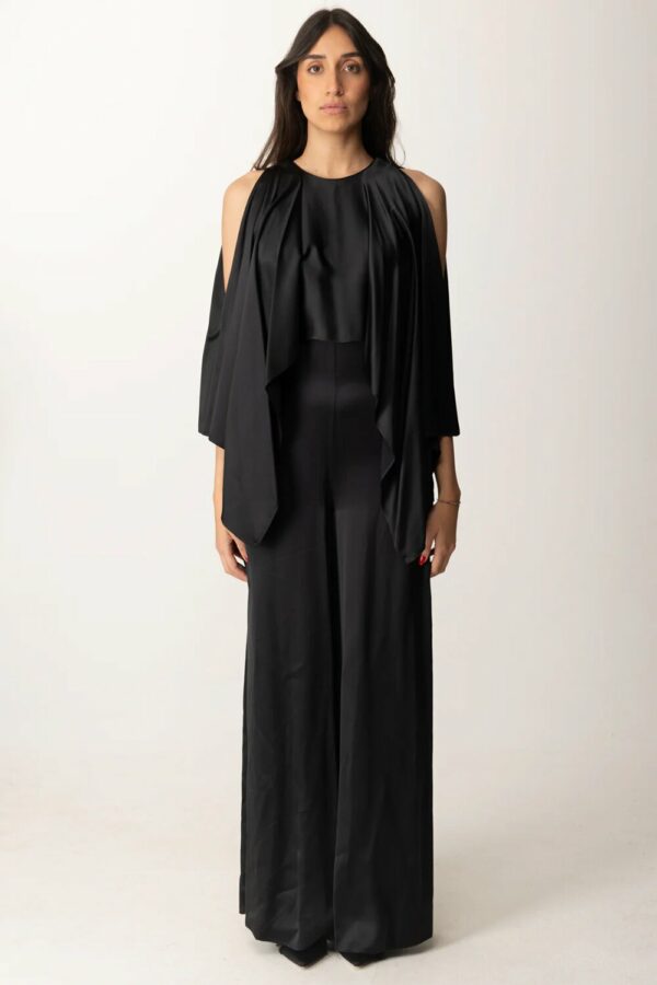 tuta Pinko dal fascino delicato, realizzata in tessuto satinato, con cut-out ampio sulle spalle e scollo tondo. Il taglio ampio dei pantaloni dona unallure sofisticata e scenografica. Indossala con sandali alti e clutch rigida per una serata elegante.